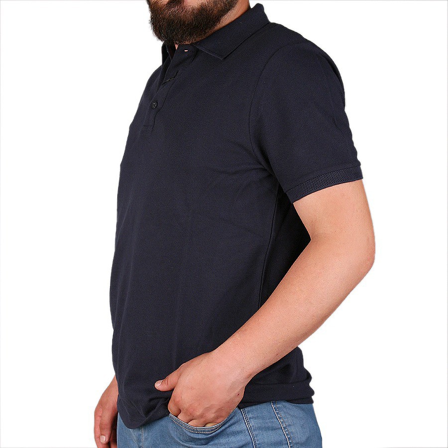 Slim Fit Dar Kesim Polo Yaka %100 Pamuk Kısa Kollu Prusya Lacivert Tişört